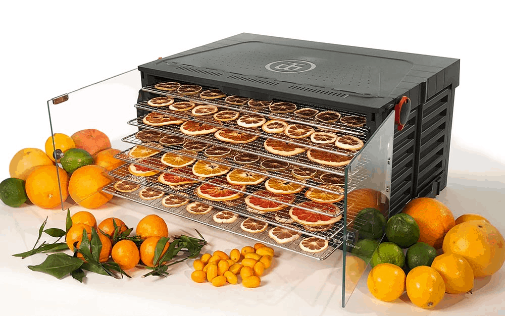 Der weltweit einzige Dörrautomat, der zur Aufbewahrung auf 1/3 seiner Größe zusammengelegt werden kann. Sahara liefert über 1 qm Trockenfläche, digital gesteuerte 750W-Doppelheizungen, einen leisen und hocheffizienten Umluftstrom, gefilterten Lufteinlass, automatisierte Doppelzeit-/Temperaturregler, Regale aus Edelstahl und Glastüren.